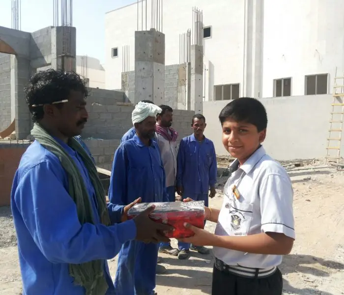 The Students of IPHS on 19th June 2017 distributed food hampers among the labourers at ‘Al Nuami Construction Company’, Ras Al Khaimah @ American University Campus during the Holy Month of Ramadan and also as a part of Year of Giving.